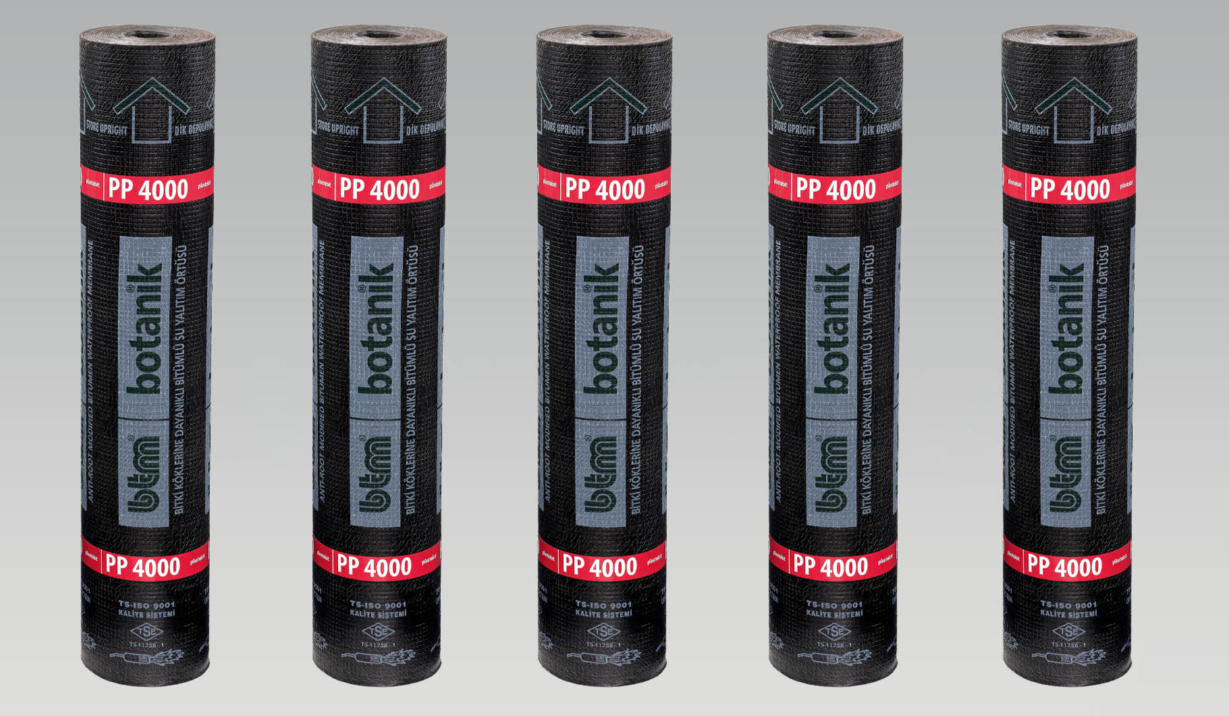 BTM Botanik, polyester keçe taşıyıcılı, SBS (styrene-butadiene-styrene) ile modifiye edilmiş bitümden üretilmiş, bitki köklerine dayanıklı, alt ve üst yüzeyleri PE (polietilen) film kaplı, yüksek elastik özellik gösteren, şalümo veya sıcak asfalt ile uygulanan bir su yalıtım (membranı) örtüsüdür.. BTM Botanik adı altında 4 farklı özelliğe sahip örtü üretmektedir. Botanik PE4, University of Applied Sciences-Hochschule Weihenstephan-Trieddorf tarafından FLL (EN 13948) bitki köklerine dayanıklılık test yöntemine göre test edilmiş ve kalite belgesi almıştır.