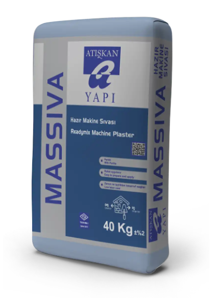 Karıştırma ve püskürtme işlemlerini bir arada yapan, sıvamatik makinesi ile massıva yüzeye püskürtülür (8-10lt su/40kg massıva). Yüzey mastarlanır. Sıva yeterince sertleştiğinde sıva yüzeyi trifillenir, istenirse nemli bir sünger ile yüzey bitirilir.